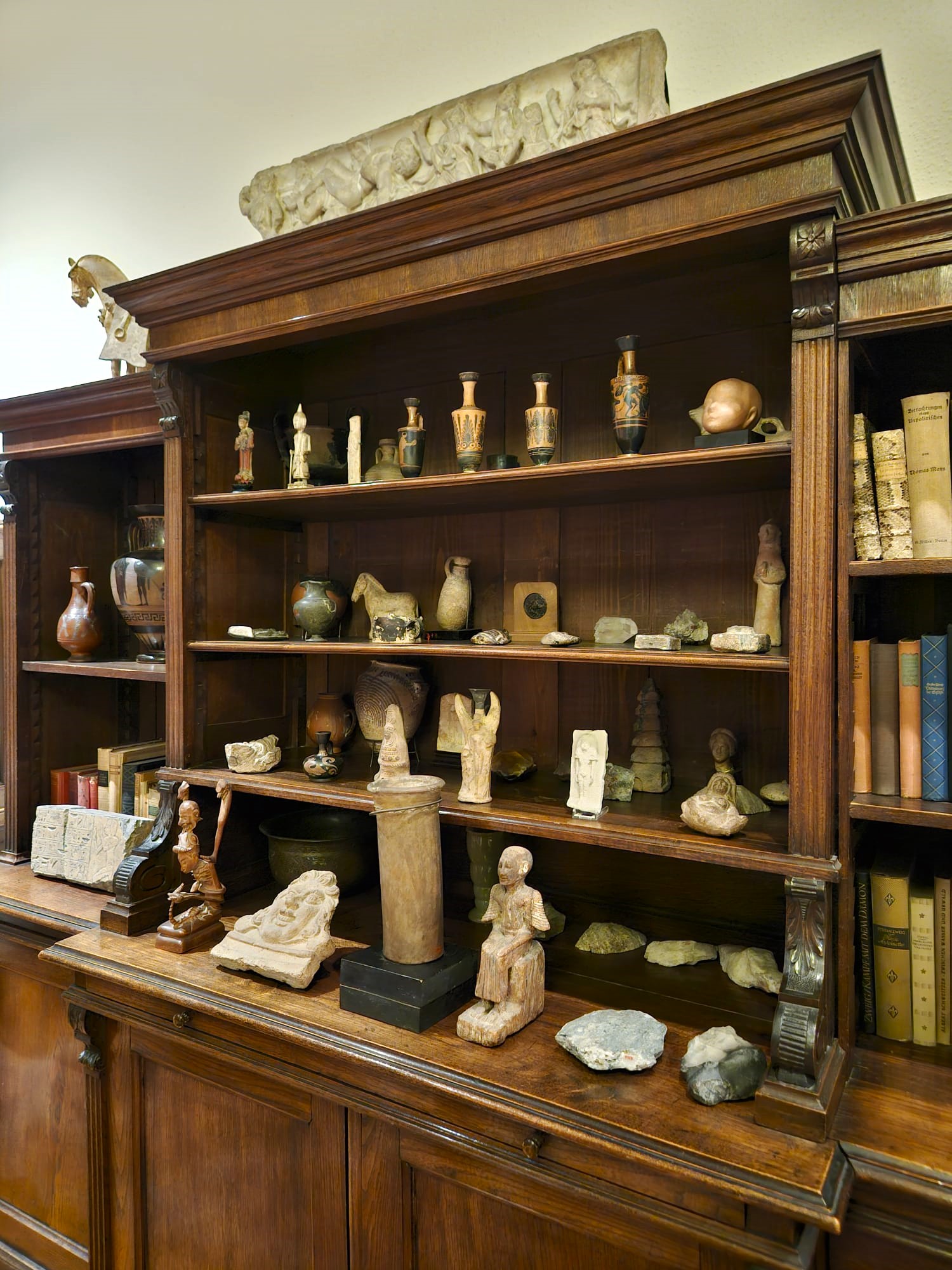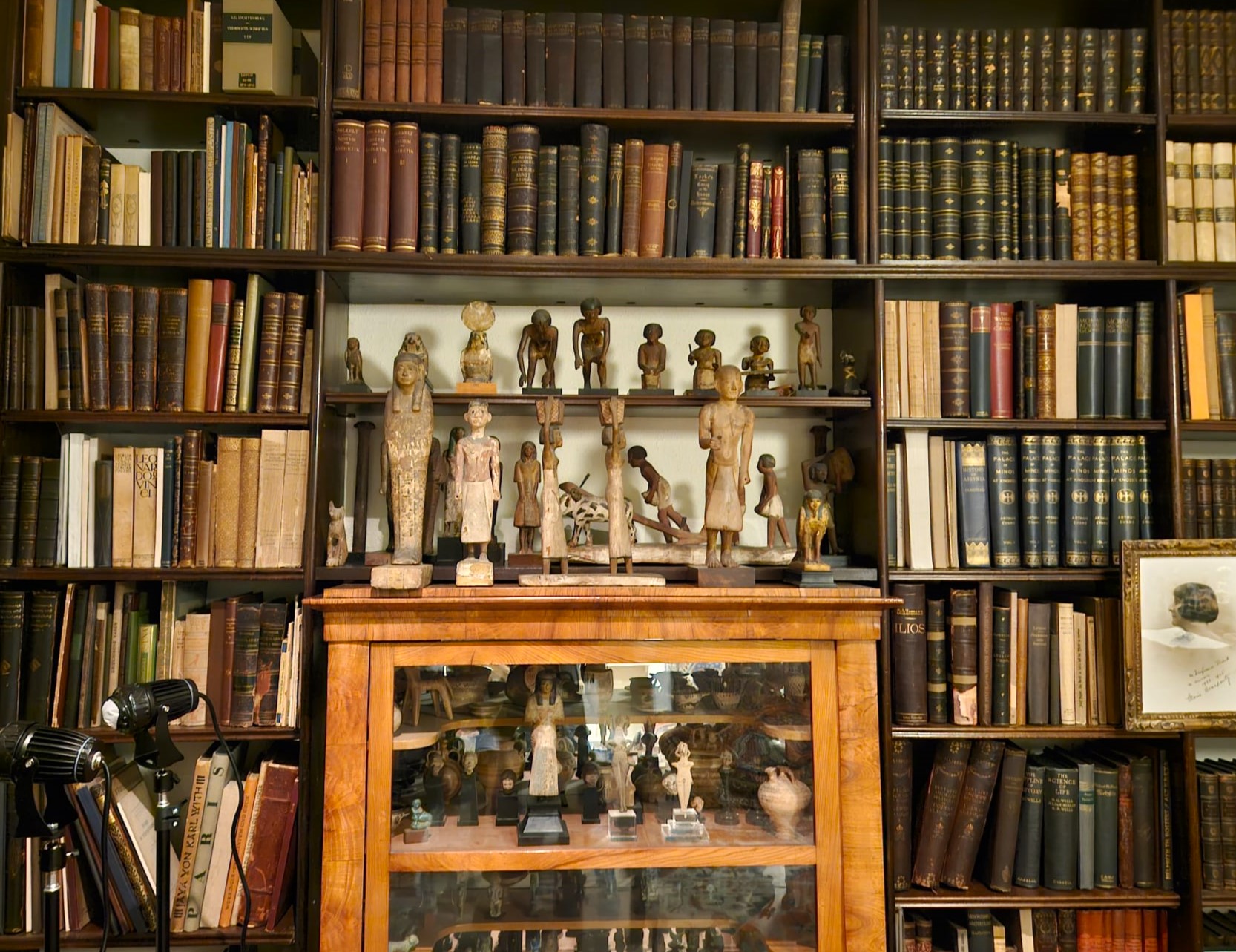 It was not solely collecting antiquities which held Freud’s fascination, his interest in the discipline of archaeology ran deep. He claimed the introduction to Ancient Greek he gained in the gymnasium gave him consolation for the rest of his life (Downing, 1975). Freud closely followed his contemporary Schliemann’s archaeological career and search for the setting for the Homeric Cycle, the ancient city of Troy (excavations now pretty panned by modern archaeologists). In his writings Freud used an ‘archaeological metaphor’ in publications throughout his life, from Studies on Hysteria, first published in 1895, to one of his final works, Constructions in Analysis, published in 1937 (Derose, 2023). Looking at his shelves, Freud’s great respect for the discipline is evident in the many thick tomes concerned with the subject. He even claimed to have read more on the subject of archaeology than on psychology.