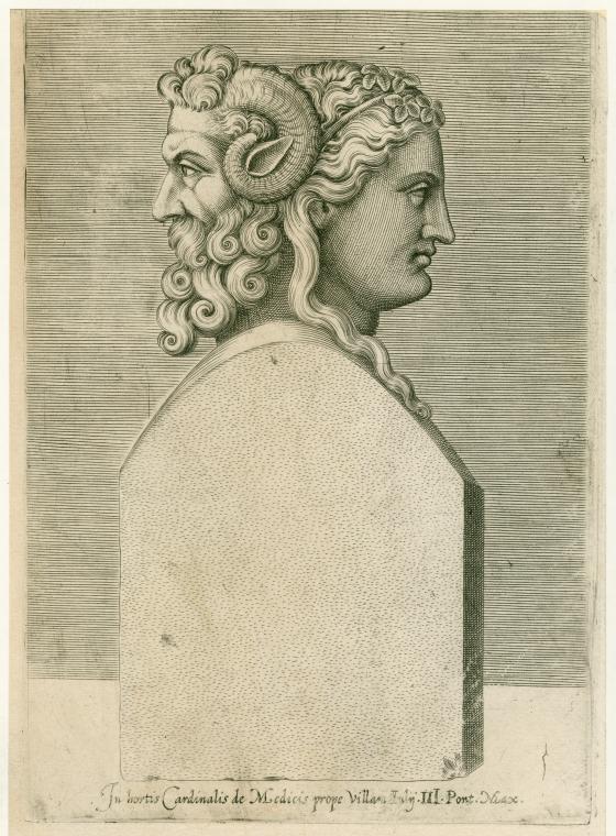 There are numerous two-faced figures from Classical mythology in Freud’s collection, such as a bronze amulet of Janus, the Roman god of beginnings and endings, and a bronze container featuring a maenad’s face on one side and a satyr on the other.